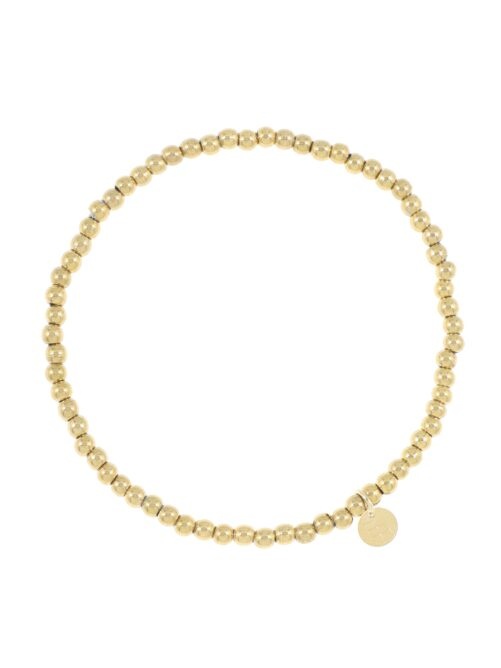 • Verguld armband met gouden balletjes. De diameter van de balletjes is 2mm. Aan het armbandje zit een logomuntje.