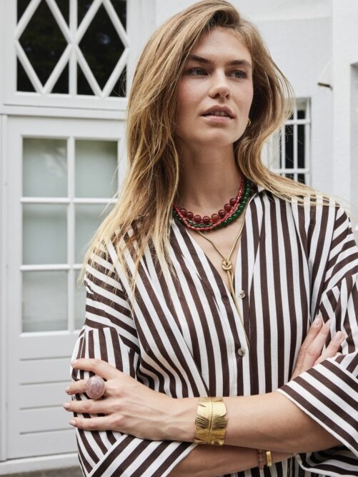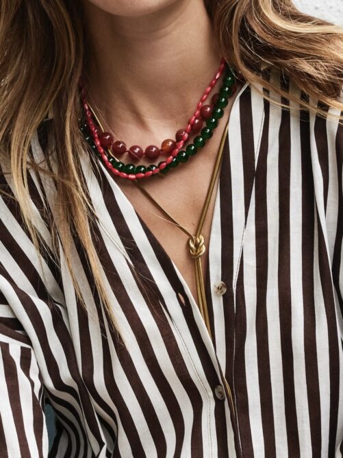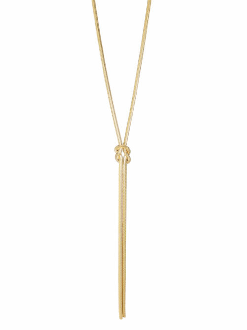 Lange snake ketting met een knoop als detail. De ketting heeft een breedte van 4 mm. Dankzij het verlengkettinkje pas je de lengte eenvoudig aan zodat de lengte perfect is. Verguld op long-lasting stainless steel.