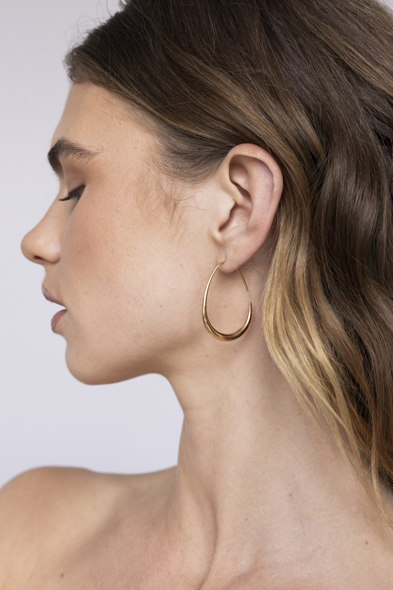 Deze ranke ovale open oorringen zijn licht van gewicht, waardoor ze comfortabel zijn om te dragen, terwijl het ovale ontwerp zorgt voor een stijlvolle en verfijnde look. Ze hebben een lengte van 4 cm en een breedte van 2,8 cm. Verguld op long-lasting stainless steel.