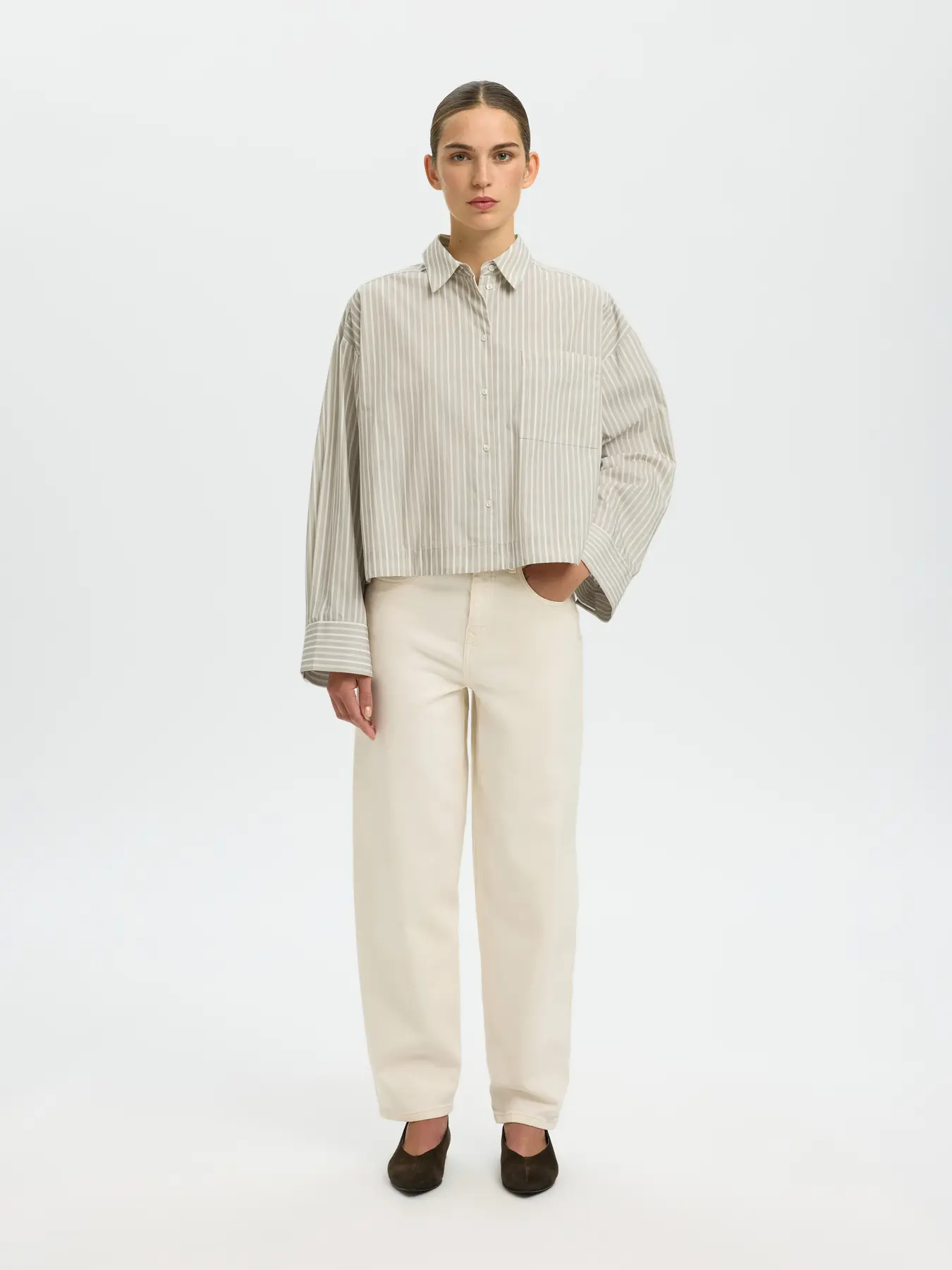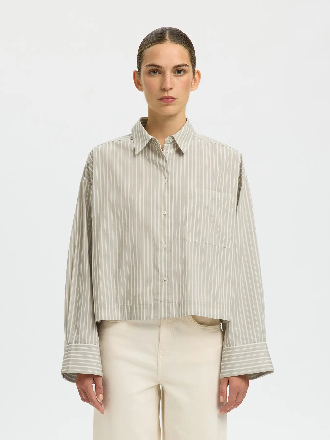 SLFASTHA LS CROPPED BOXY SHIRT Pure Cashmere Bright White