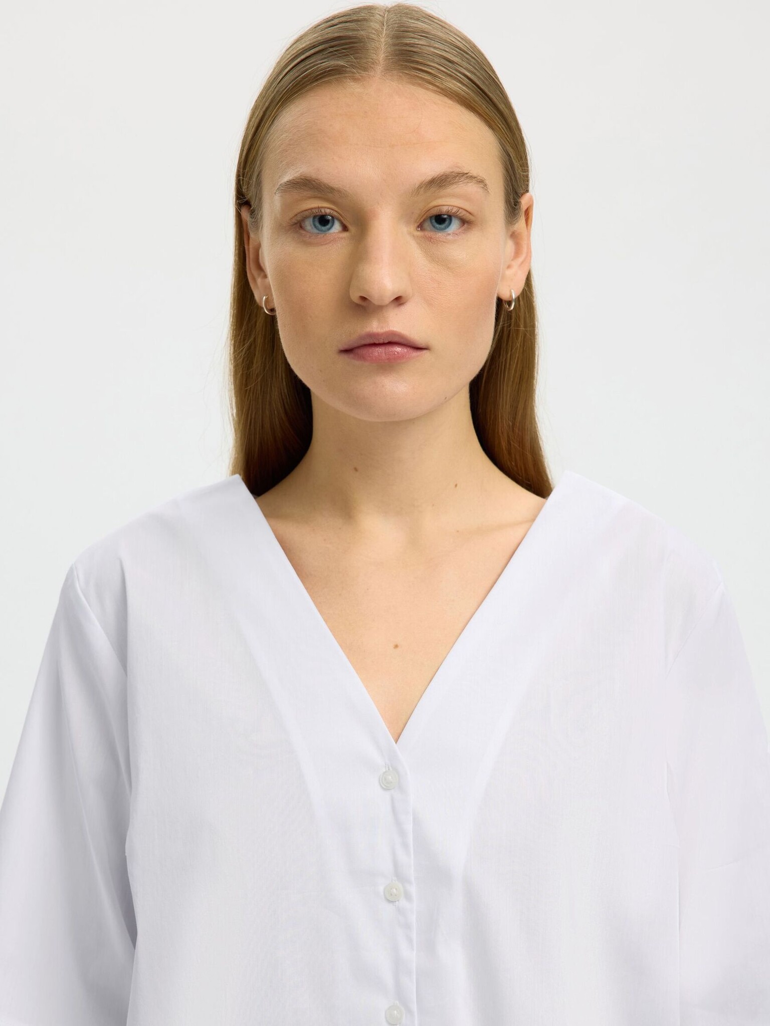 Selected SLFBEA 3/4 V NECK SHIRT Bright White