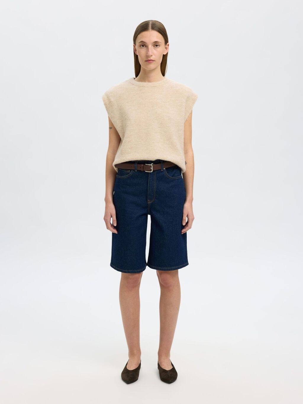 • Een gebreid gilet is het mooiste laagje van dit seizoen. Deze is gemaakt van ene luxe mix van wol en alpacawol. Draag hem over een T-shirt of blouse met lange mouwen. Met schoudervulling!