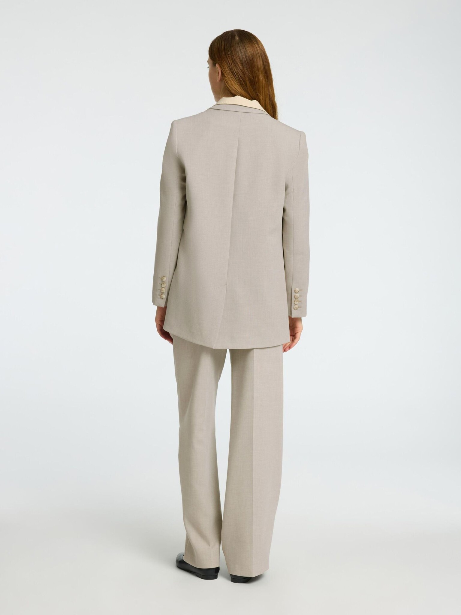 De blazer valt iets ruimer dus twijfel je tussen 2 maten dan kun je het beste de kleinere maat bestellen.