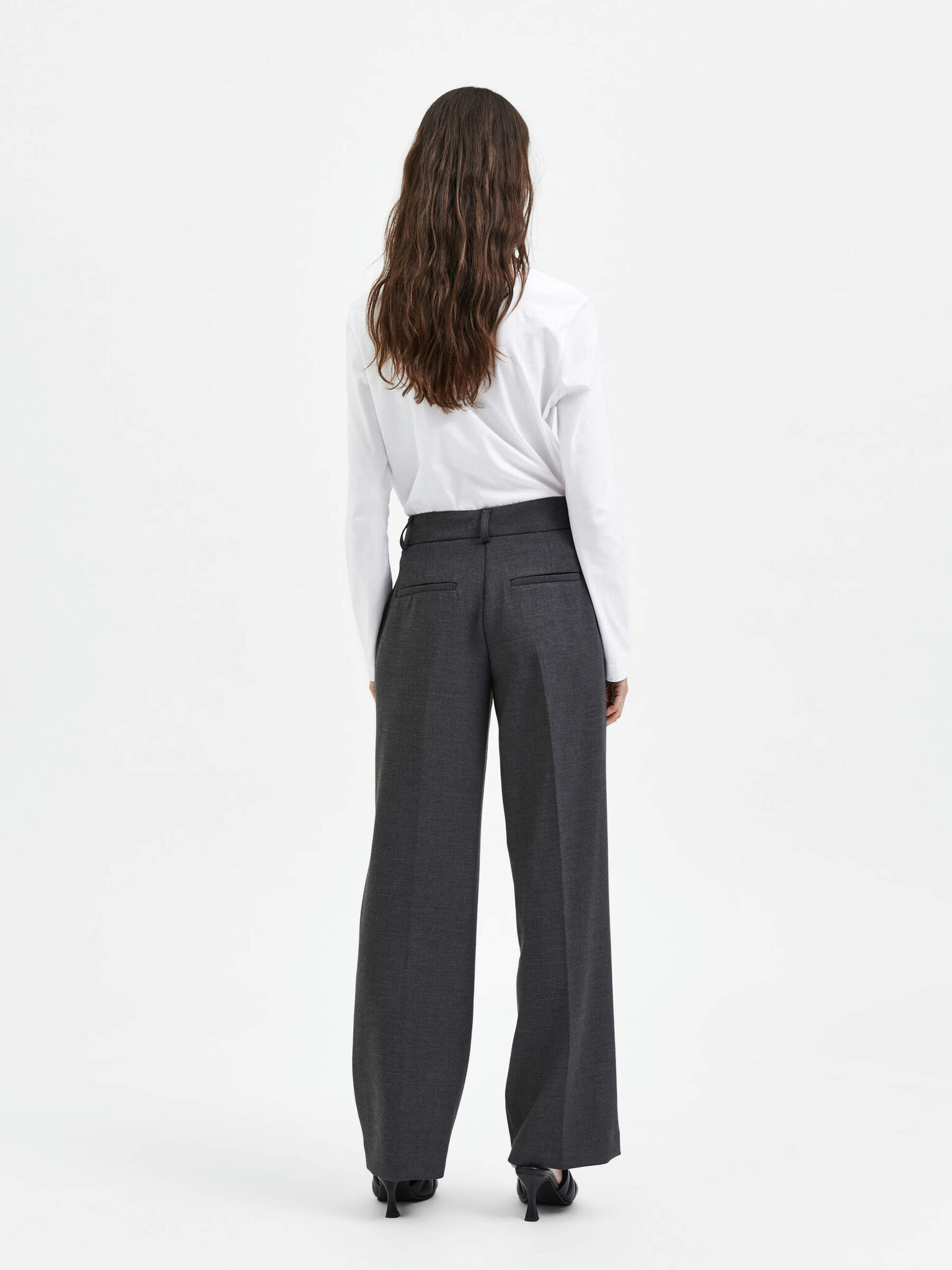 SLFRITA MW WIDE PANT Dark Grey Melange